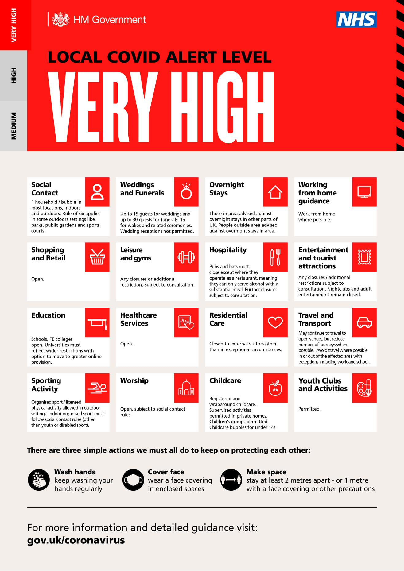 Well the whole place has all gone a bit more crazy again hasn't it! We now find ourselves in Tier 3 of the government restriction guidelines which means that once again we are unable to socialise inside each others houses or in gardens with our family, friends and loved ones. More restrictions are being put in place - all for the greater good but still not always easy to understand.